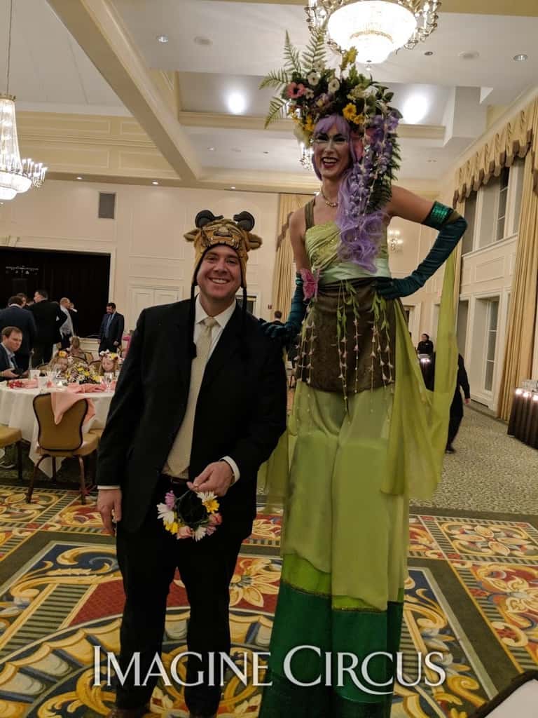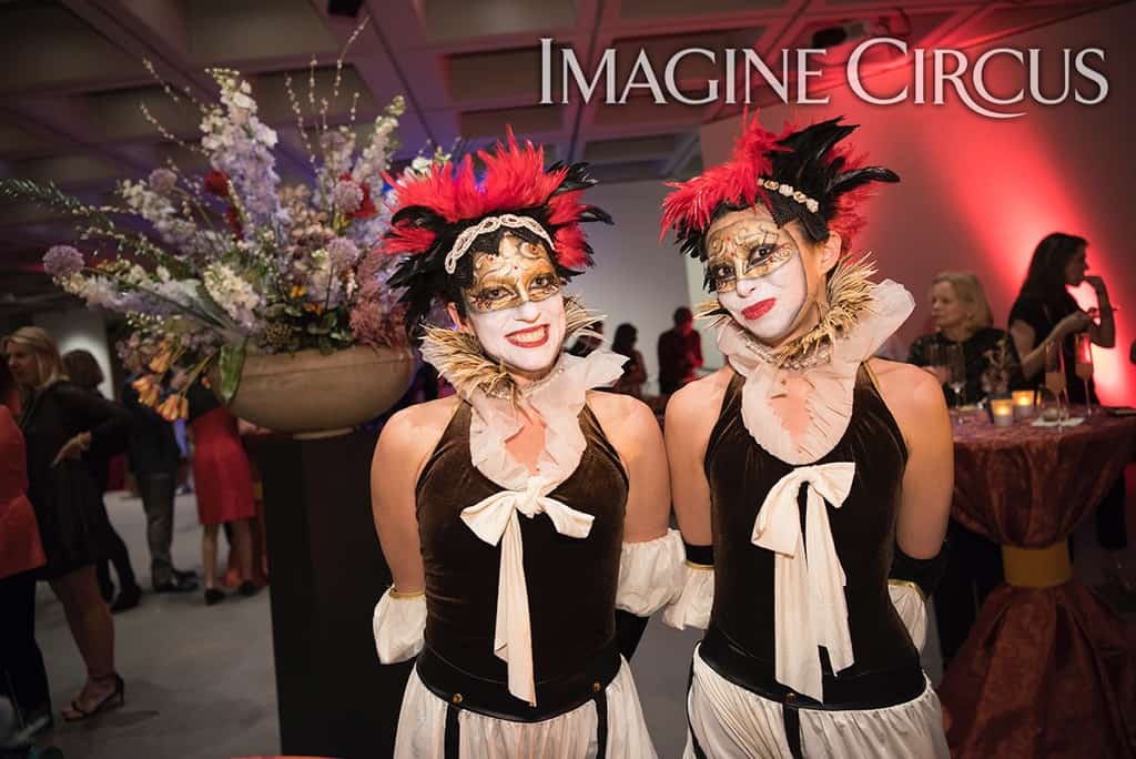 With the VAE Gala happening just a few days after February 14th, Imagine Circus was excited to debut the Red Rose Strolling Table, a beautiful entertainment option for Valentine’s Day events. This elaborately adorned human table combines mobile entertainment and creative food service to offer a one-of-a-kind experience. Strolling Tables are an extravagant way to pass out party favors, serve hors d’oeuvres, pour champagne, or hand out swag.