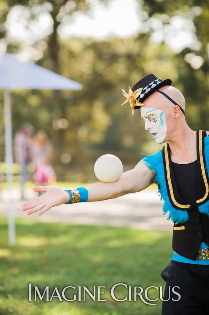 Imagine Circus presents, “Time with Tain,” a one-man comedic circus show featuring a variety of colorful juggling props and interactive elements. Tain, also known as “Tain the Knife Juggler,” impresses audiences of all ages with an assortment of awesome juggling skills including balls, clubs, knives, feathers, fruit and fire! His energetic personality shines on any stage, big or small, keeping onlookers riveted. Whether you need an exciting hour of educational entertainment or a 10-minute variety show, “Time with Tain” can be fully customized to meet your needs.