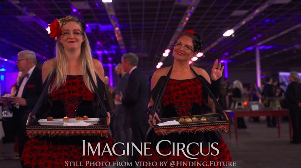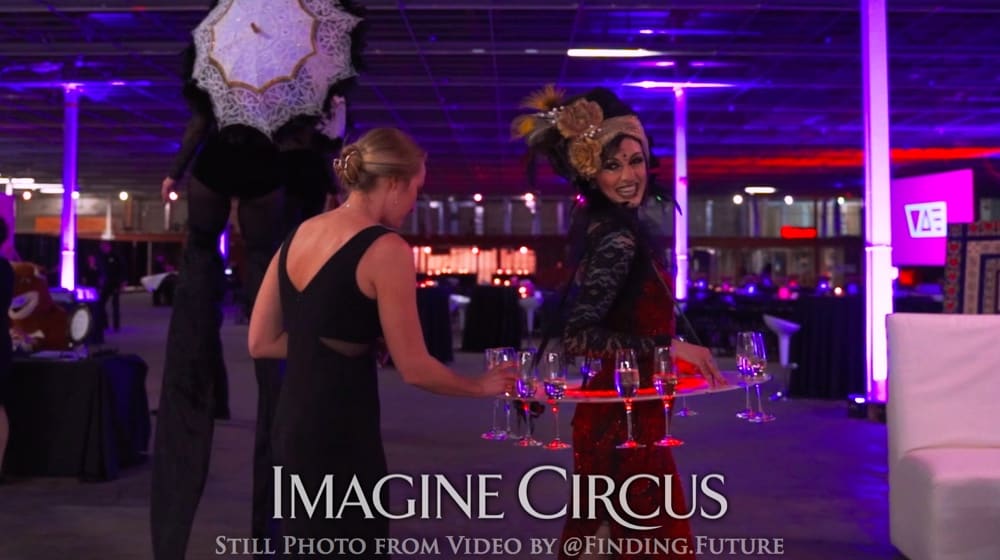 Request a Free QuoteAt your next gala, black tie affair, or corporate party, serve in style with Imagine Circus strolling tables, champagne dresses, and wine LED skirts. Service with a skilled performer makes the ordinary extraordinary, a service experience your guests will remember for years to come.