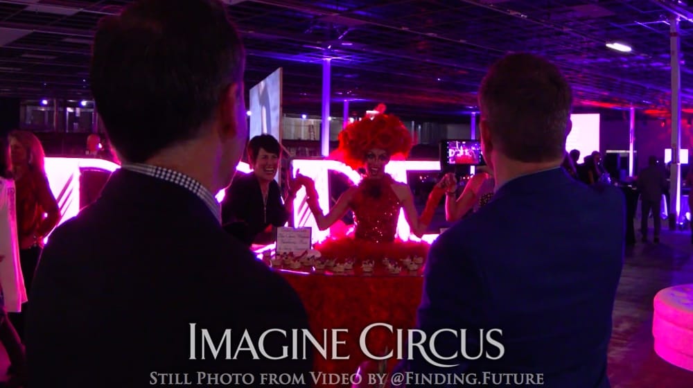 With the VAE Gala happening just a few days after February 14th, Imagine Circus was excited to debut the Red Rose Strolling Table, a beautiful entertainment option for Valentine’s Day events. This elaborately adorned human table combines mobile entertainment and creative food service to offer a one-of-a-kind experience. Strolling Tables are an extravagant way to pass out party favors, serve hors d’oeuvres, pour champagne, or hand out swag.