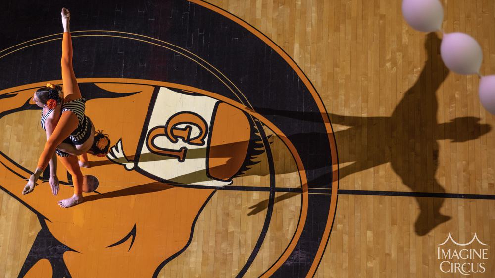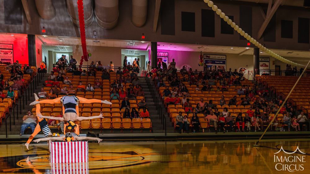 Starring Imagine Circus’s dynamic duo, Katie and Kaci, our “Acro Alphabet Show” offers impressive partner acrobatics and juggling, along with positive messaging and inspiring interactive elements. These movement enthusiasts are healthy eaters, creativity cultivators, self-published authors, and reading advocates! Years ago they were inspired to create every letter of the alphabet with their bodies–an amazing feat of strength, skill, and patience– and published their first book, ACRO: An Alphabet Art Book. Featuring colorful letters and high resolution images of the “acro alphabet,” their book includes an uplifting poem about hard work and cooperation.