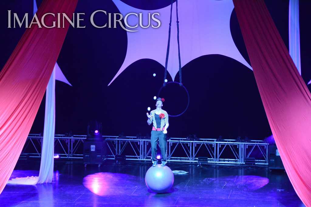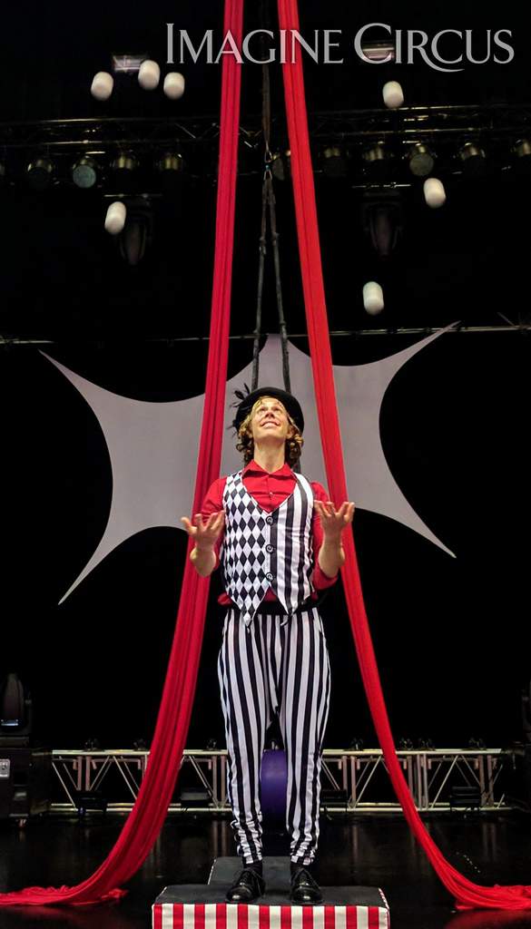 Imagine Circus presents, “Time with Tain,” a one-man comedic circus show featuring a variety of colorful juggling props and interactive elements. Tain, also known as “Tain the Knife Juggler,” impresses audiences of all ages with an assortment of awesome juggling skills including balls, clubs, knives, feathers, fruit and fire! His energetic personality shines on any stage, big or small, keeping onlookers riveted. Whether you need an exciting hour of educational entertainment or a 10-minute variety show, “Time with Tain” can be fully customized to meet your needs.