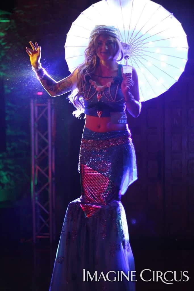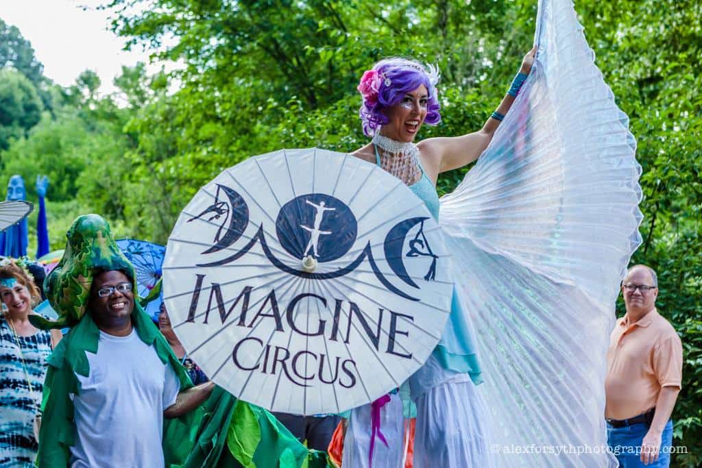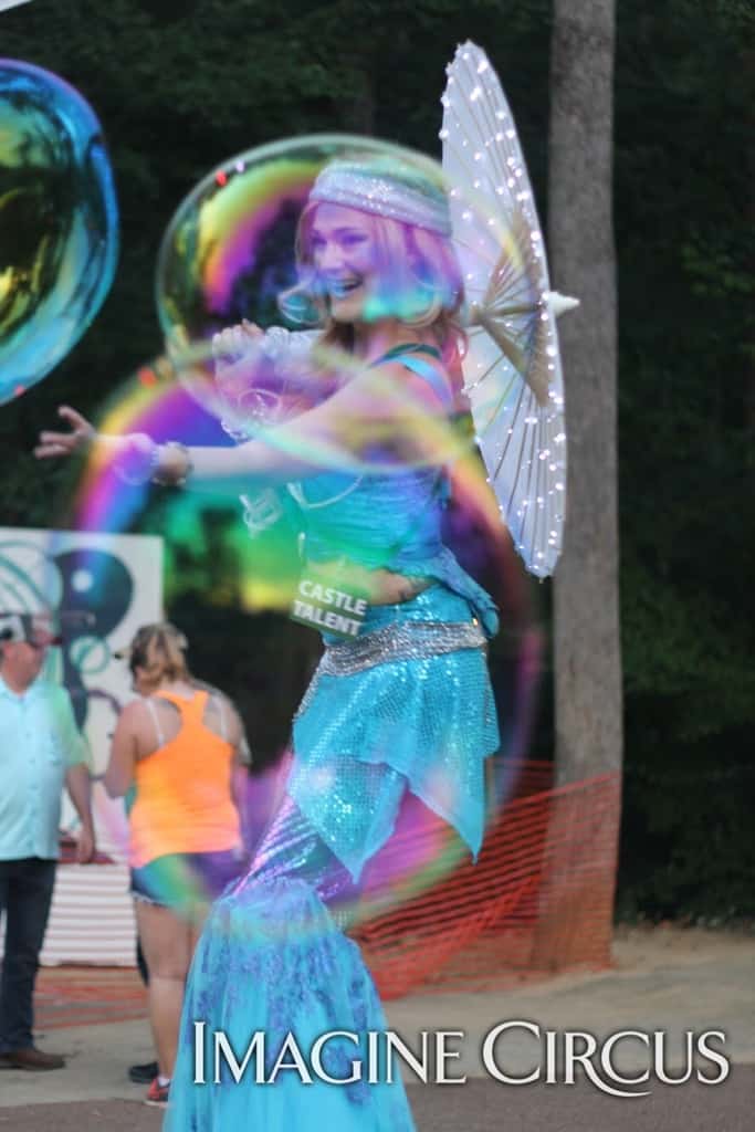 Each December, Imagine Circus performers spend multiple weekends in Newport News, Virginia’s City Center at Oyster Point, sharing holiday cheer at 25 Nights of Northern Lights. Mirror Man roves the event handing out high fives. Imagine Circus elves MC the event, sharing details about activities and raffles. Our Candy Cane princess roams through the blocked off streets for festive photos. The magic of the season spreads cheer and wonder to children and adults alike.
