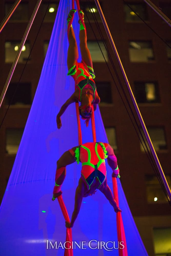 Starring Imagine Circus’s dynamic duo, Katie and Kaci, our “Acro Alphabet Show” offers impressive partner acrobatics and juggling, along with positive messaging and inspiring interactive elements. These movement enthusiasts are healthy eaters, creativity cultivators, self-published authors, and reading advocates! Years ago they were inspired to create every letter of the alphabet with their bodies–an amazing feat of strength, skill, and patience– and published their first book, ACRO: An Alphabet Art Book. Featuring colorful letters and high resolution images of the “acro alphabet,” their book includes an uplifting poem about hard work and cooperation.